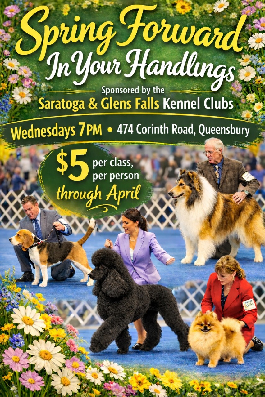 Classes are every Wednesday at 7:00 pm at the Glens Falls Kennel Club, 474 Corinth Road, Queensbury, NY (off Exit 18 of the Northway).